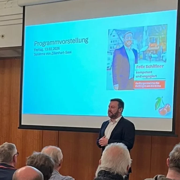Bis zur Bürgermeisterwahl am Sonntag, 8. März 2026 freue ich mich darauf, mit Ihnen ins Gespräch zu kommen und für meine Ideen zu werben. Sprechen Sie mich gerne an oder schreiben Sie mir.