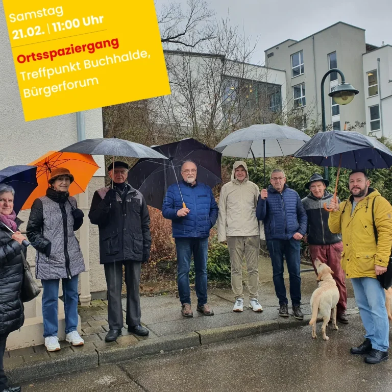 Das Wetter war schlecht - die Stimmung hingegen gut: Bei meinem Ortsspaziergang in der Buchhalde ging's um die Erreichbarkeit, um Infrastruktur und Energieversorgung, den Generationenwechsel und bürgerschaftliches Engagement.